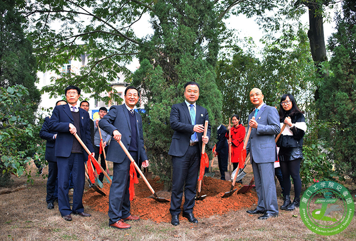董事会领导、校领导、师生代表共同种植柏树