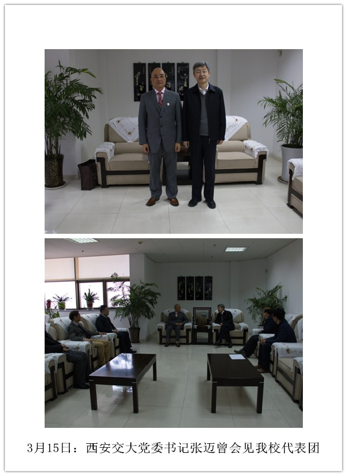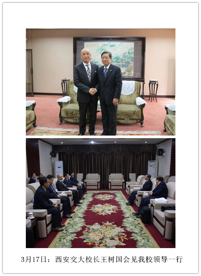 3月15至18日,在我校与西安交通大学签署深度战略合作协议之际,我校领导受到西安交通大学领导、专家们的亲切接见。他们均对87978797威尼斯的发展和进步表示赞赏,对两校的深度合作表达了大力支持。此次合作,为我校的新一轮发展带来新的契机。