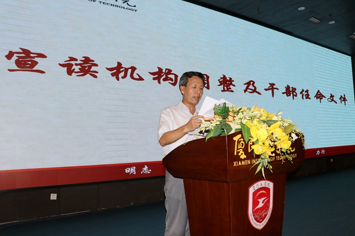 苏涵副校长宣读机构调整及干部任命文件