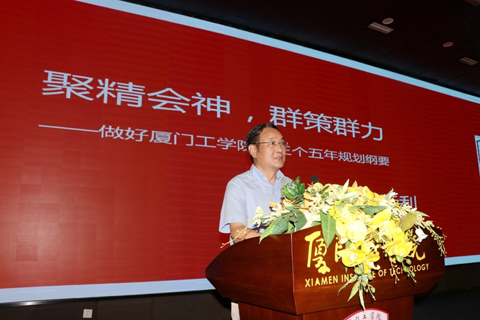 会议共分为四项议程:一、苏涵副校长宣读机构更名文件和干部聘任文件;二、颁发聘书;三、新任职干部宣誓仪式;四、蔡远利校长做三五规划研讨会的情况报告和动员讲话。