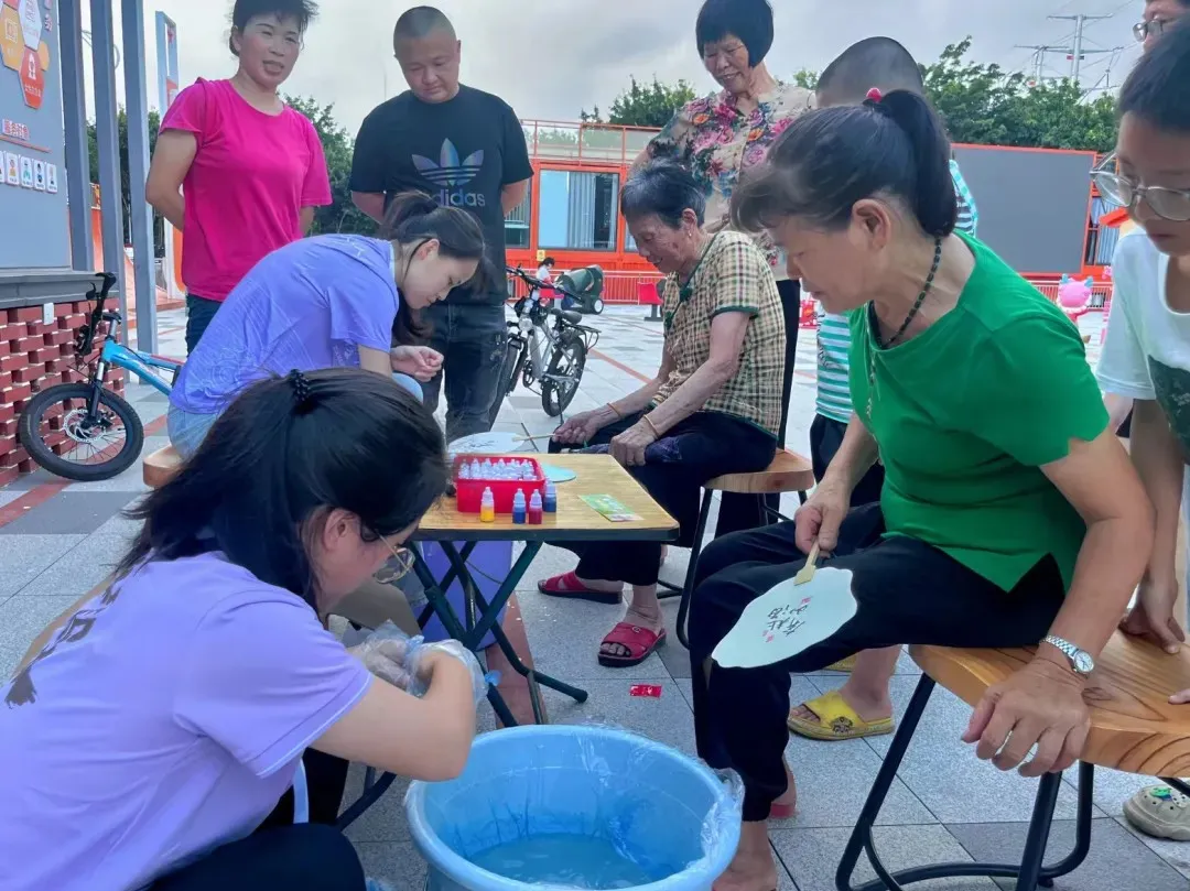 实践首日,实践队通过“社区漫步”走访社区,与居民交流以定位需求、梳理资源,优化方案。针对儿童,志愿者开设以英语为主、多学科为辅的暑期课堂,融入流体熊制作,并及时反馈学习情况。期间,社区嘉年华通过游戏、手工促进老幼互动;联合马巷派出所与商铺开展反诈宣传及智能设备教学,助力老年人融入智慧生活。7月1日建党节,队员们采访老党员,老幼共制非遗漆扇,传承红色精神与非遗文化。