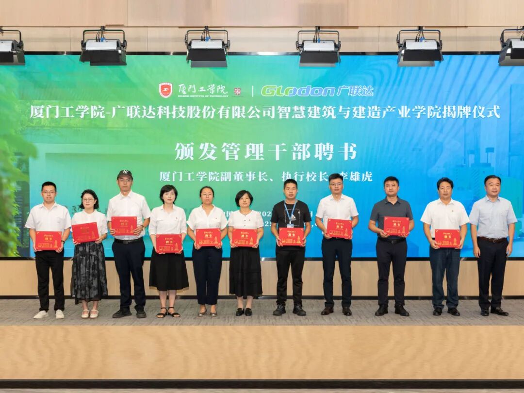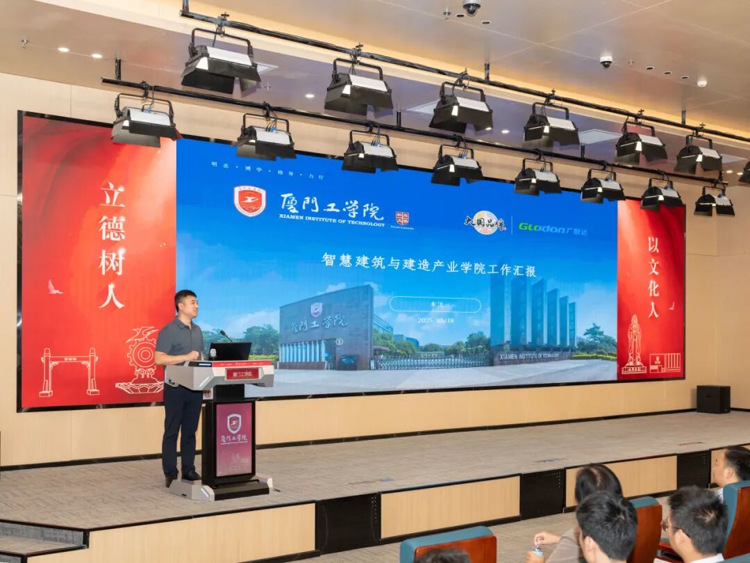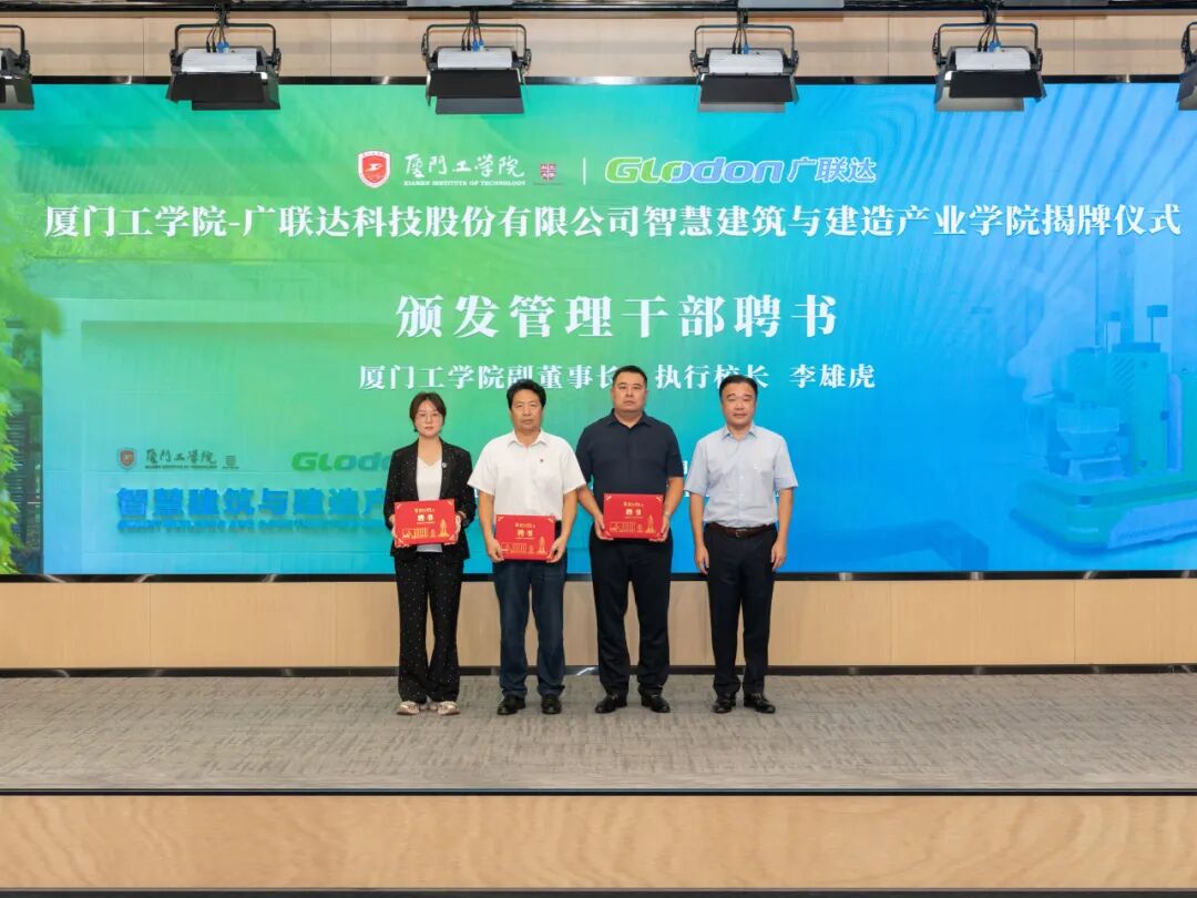 在全场嘉宾的共同见证下,87978797威尼斯副董事长、执行校长李雄虎与广联达科技股份有限公司副总裁、数字教育事业部总经理钱锋为智慧建筑与建造产业学院正式揭牌。红色幕布缓缓落下,标志着校企双方在产教融合领域的合作迈出了实质性步伐。