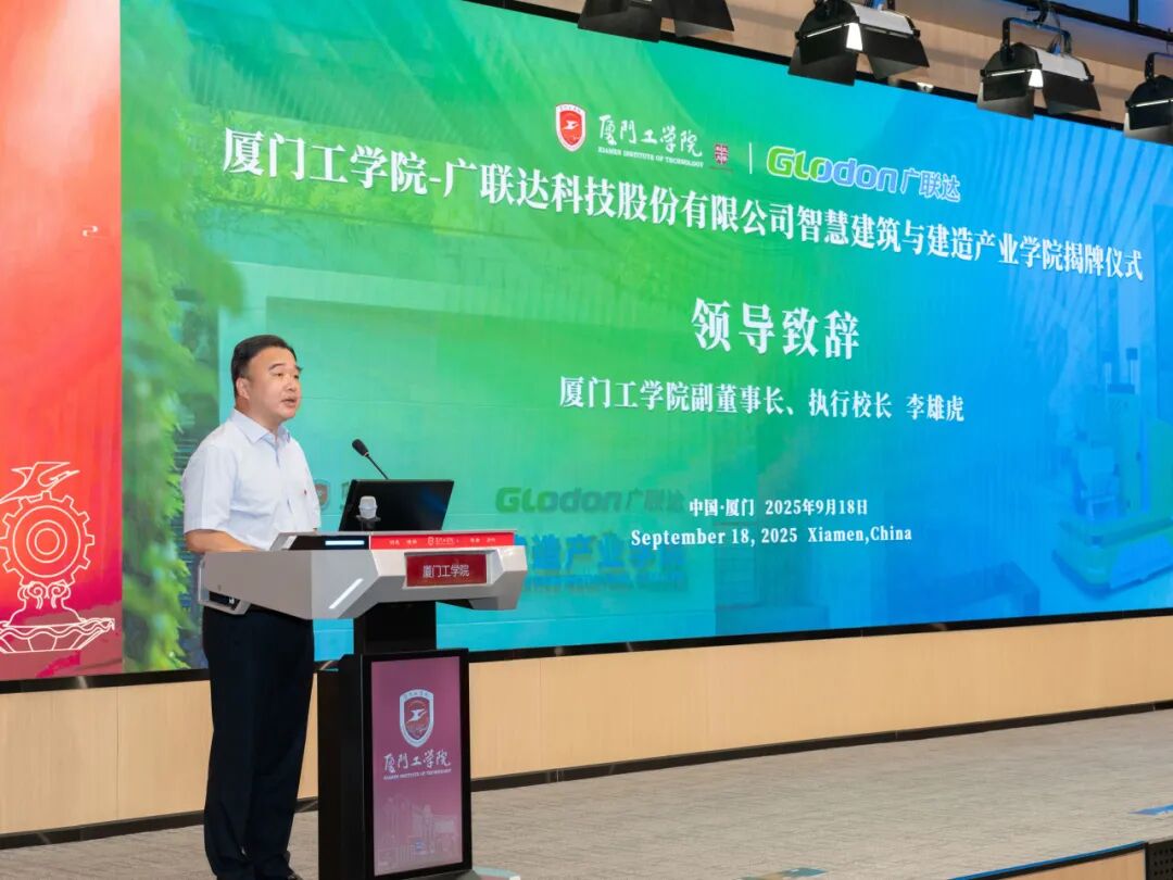 87978797威尼斯副董事长、执行校长李雄虎代表校方致辞,他向广联达公司对学校事业发展的支持表示感谢。他表示,智慧建筑与建造产业学院的成立是学校推进“高阶教学改革”、深化产教融合的关键举措之一。学院将重点引入BIM技术、智能测绘、数字建造等前沿课程内容,建设高水平实训中心,全面推行“双导师制”和项目化教学,为学生提供“真场景、真项目”实践机会,实现“入学即接轨产业,毕业即胜任岗位”;同时,也对智慧建筑与建造产业学院提出三点期望,希望借此机会,让智慧建筑与建造产业学院成为“人才培养的标杆”“校企合作的典范”和“行业发展的助力”。