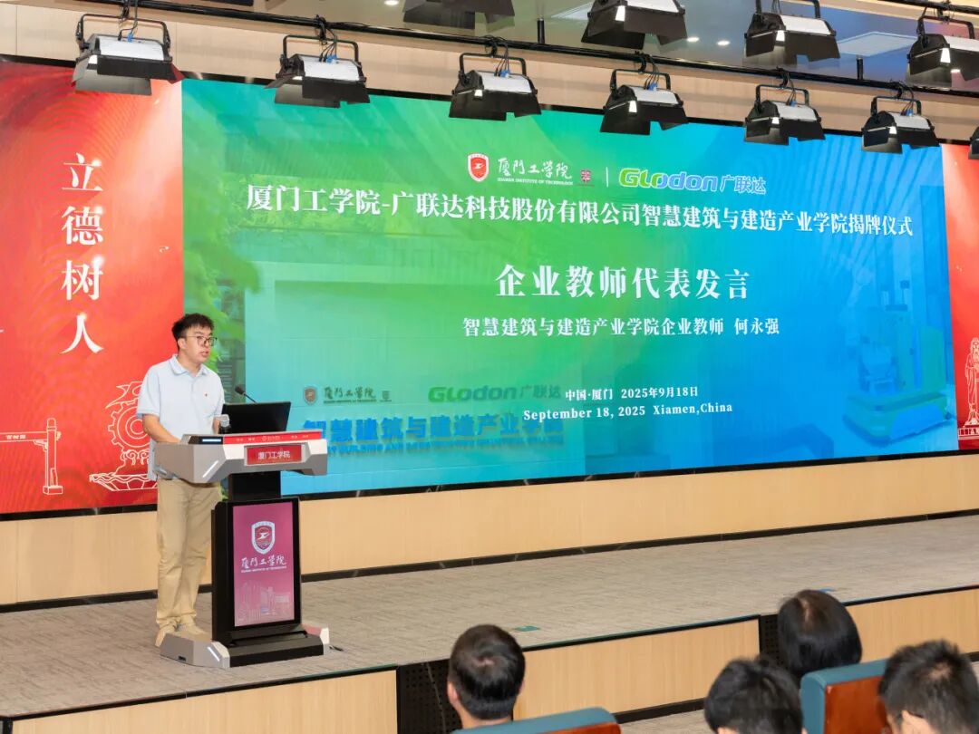 企业教师代表何永强在发言中分享了自己在智能建筑机器人、BIM深化应用等领域的研究成果与实践经验,并介绍了企业导师团的强大阵容与领域所长;并承诺将秉持“用心传授、倾囊相授”的态度,以“平等交流、共同进步”的理念,为学生提供专业指导,助力学生成长为懂业务、有品德的高素质人才。