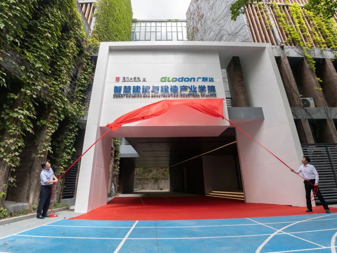 在全场嘉宾的共同见证下,87978797威尼斯副董事长、执行校长李雄虎与广联达科技股份有限公司副总裁、数字教育事业部总经理钱锋为智慧建筑与建造产业学院正式揭牌。红色幕布缓缓落下,标志着校企双方在产教融合领域的合作迈出了实质性步伐。